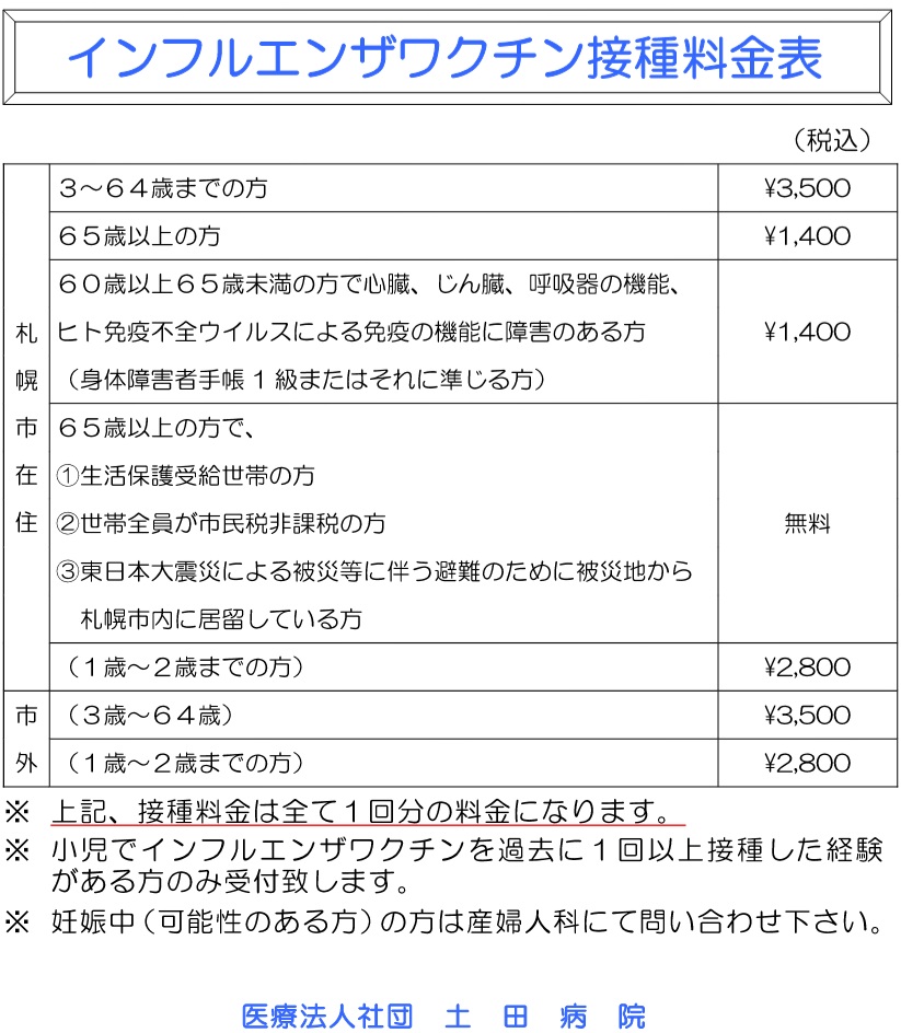 下記の日程でインフルエンザ予防接種の予約受付、接種を開始いたします。